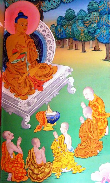 Il se produit le quatrième jour du sixième mois lunaire tibétain. Pendant sept semaines après son illumination , Bouddha n’a pas enseigné. Enfin, encouragé par Indra et Brahma , il fit tourner la Roue du Dharma pour la première fois, à Sarnath , en enseignant les « Quatre Nobles Vérités ».